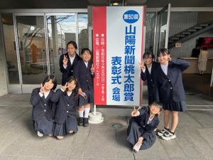 このたび、北房小学校の4年生児童が山陽新聞社「桃太郎賞」をいただき、代表児童7名が3月8日(日曜日)に山陽新聞社さんたホールで行われた受賞式典に参加しました。