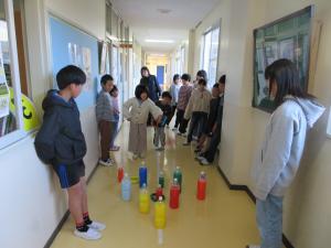 次に、縦割り班遊びをしました。リーダーである6年生が考えた遊びを通して、異学年で交流し全校が仲良くなれるように計画しました。それぞれの場所で、楽しそうな笑い声や笑顔があふれていました。