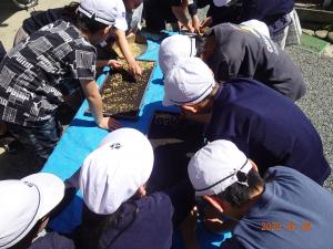 5月8日(木)に5年生が地域の農家さんにお世話になり、籾まき体験をしました。最初にやり方を教わったのですが、丁寧に説明してもらえるので、子どもたちも熱心に話を聞き、作業をすることができました。3つ班に分かれて籾を並べたのですが、どの班もすきまがないように、確認をしながら並べることができていました。いよいよ5年生のお米作りがスタートです。秋の収穫まで、農家さんにお世話になり、作業体験もしながら学習していきたいと思います。