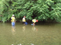 真庭市役所環境課の方にお世話になって、恒例の「水辺の教室」を行いました。月田川に棲んでいる川の生き物たちを探し、どんな水の場所にいる生き物なのかを調べました。