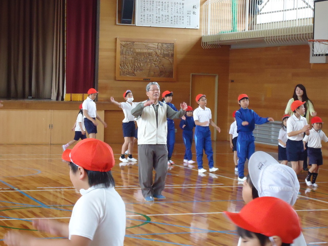 毎年、学区内にお住まいの前田さんに指導に来ていただきます。振り付けを考えられた前田さん直伝の踊りで運動会を盛り上げます。
